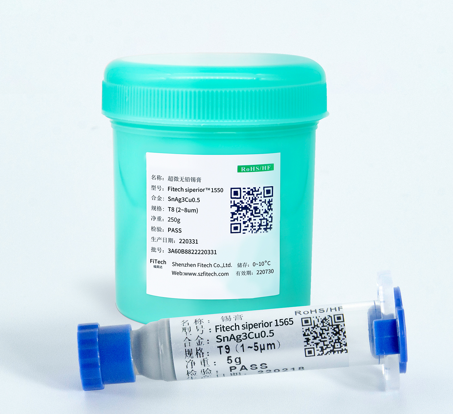 深圳市福英達工業技術公司生產的低溫和中溫錫膏/錫膠有著優秀的球形度,潤濕性,穩定粘度和觸變性,適用于點膠和印刷工藝,可在焊盤形成冶金連接,有效提高了焊點可靠性。可采用水洗型和免洗型錫膏/錫膠。印刷后元件不偏移且焊點牢固,有效保證了焊接可靠性。另外,由于Mini LED芯片的尺寸(50-200μm)和間距很小(p<1.2mm),傳統的錫膏已無法滿足封裝要求,焊料顆粒趨于微小化。福英達工業技術公司擁有業內首屈一指的超微制粉技術,可制造6號-10號粉。其中主力產品——8號粉中低溫超微系列錫膏是采用液相成型技術制成,粒徑可達到2-8μm,能夠滿足微間距焊接的要求。